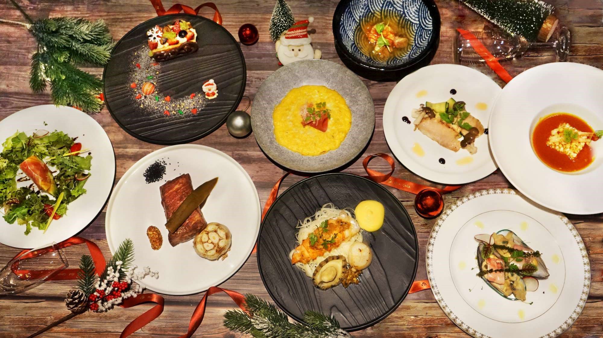 ▲馬告山椒烤海肥蝦配北海道干貝及鮑魚佐檸檬蛋黃奶油醬,用美食過聖誕(圖/大地酒店提供)