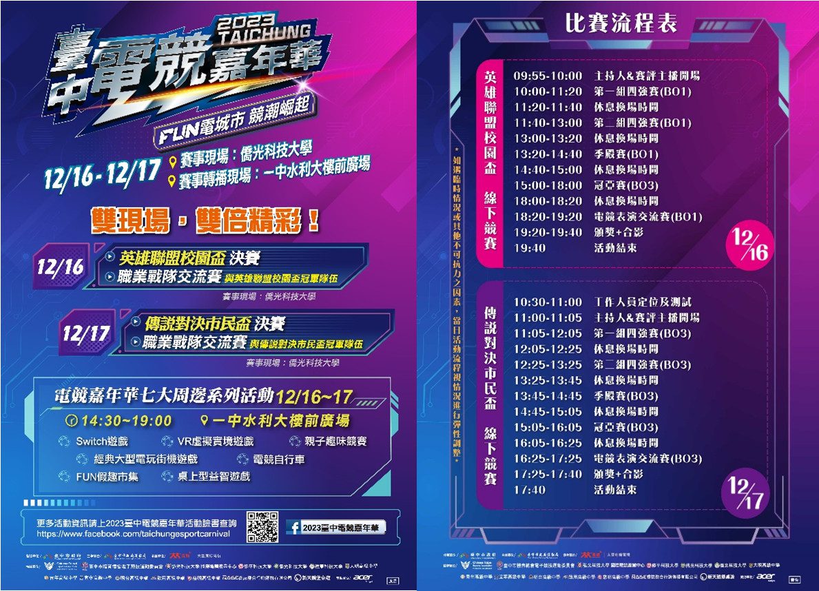 活動相關資訊詳情請上「2023臺中電競嘉年華」活動Facebook粉絲專頁查詢。