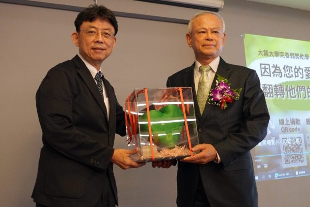 大葉大學推動完善弱勢助學計畫,校慶當天推出限量愛心小樹點公仔募款以及愛心樹冠名競標活動,號召學長姐幫助學弟妹翻轉人生,蔡啟仲、曾翠緣賢伉儷熱心捐贈10萬元,許多校友也在傑出校友慶祝餐會響應小樹公仔的公益助學。愛心樹年度冠名由校友總會第3、4屆理事長陳錫堯以20萬元得標,方文昌校長親自贈送3D列印的愛心樹模型給陳錫堯前理事長,感謝他對弱勢助學的大力支持。