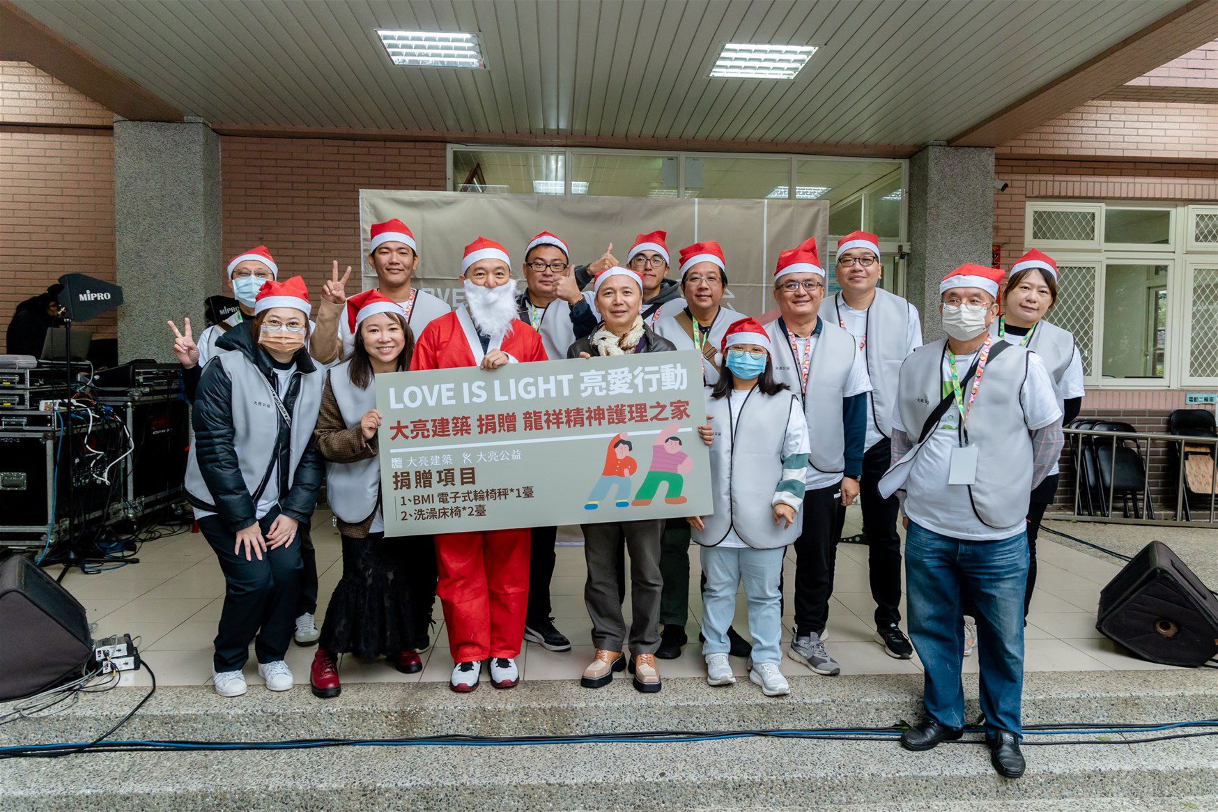 上周末(23)平安夜前日,龍祥長照中心迎來了一群聖誕小精靈,這是大亮建築亮愛行動第四場,志工們陪同長者提前度過溫馨的聖誕節,為了配合聖誕節主題,這次的表演與以往有些許的不同,大亮建築安排了許多精彩的演出,安排現場每位志工戴上聖誕帽陪在阿公阿嬤一旁欣賞表演。