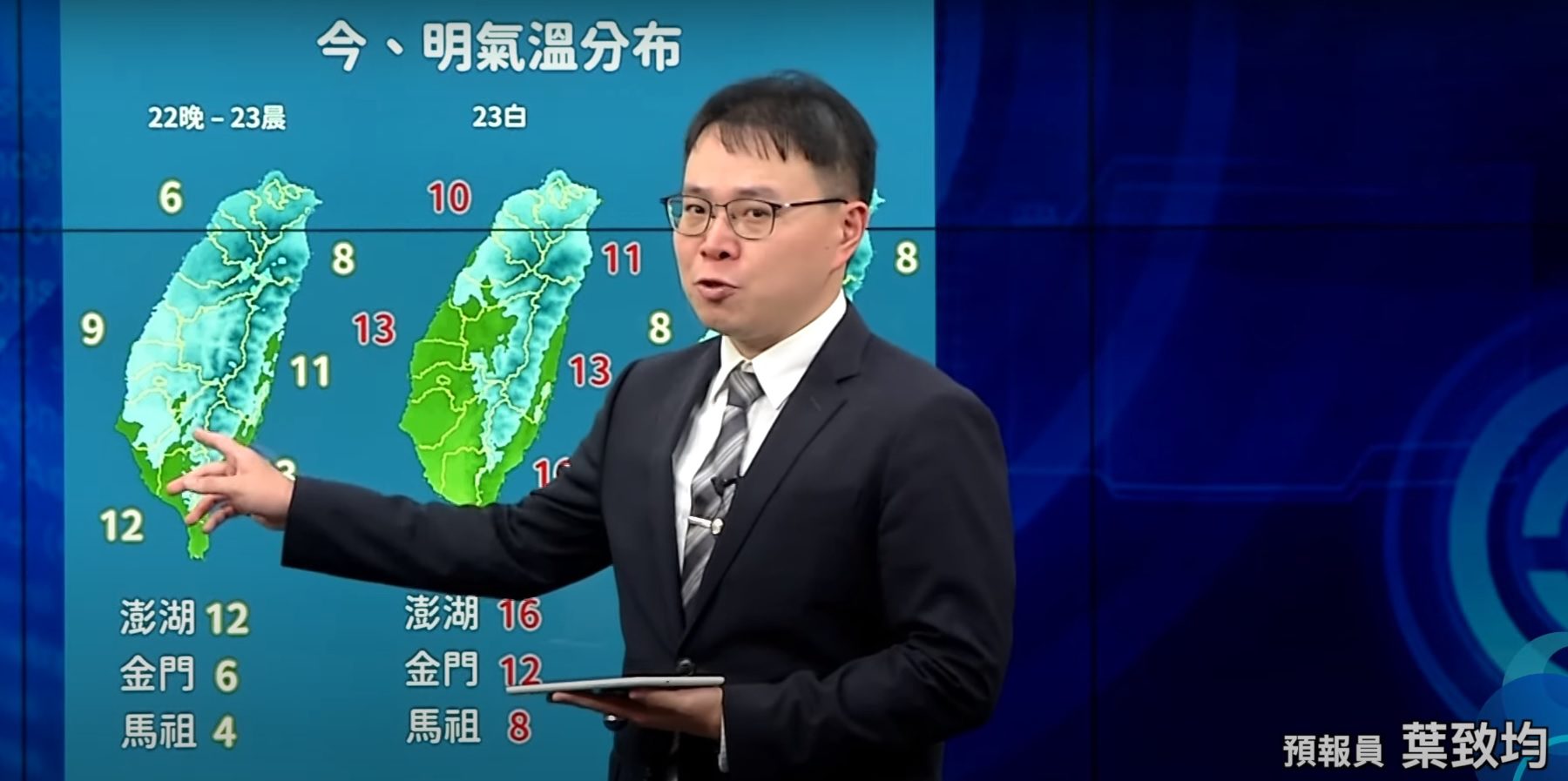 交通部中央氣象署針對19縣市發布低溫特報,由於受到寒流影響1/22日至1/24日,各地天氣非常寒冷,有10度以下氣溫發生的機率。今(22)日至明(23)日中部以北、東北部及東部地區及金門有6度以下或持續10度左右或以下的低溫、連江縣有持續6度左右或以下低溫(橙色燈號)發生的機率,請注意防範。